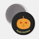 Niedliche Kürbisgesicht auf schwarzem Hintergrund Rundmagnet. Text kann personalisiert sein.
