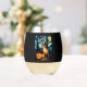 Cute American Staffordshire Terrier Dog Halloween Jack O Lantern Pumpkin Face Starry Night Van Gogh Style