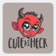 Vector cartoon illustration of a devilishly cute little devil with big eyes with Cute as Heck text. Keywords: devil, heck, cute, demon, evil, halloween, monster, horns, horror, liebenswürdig, sweet, devilishly, devilish, precious, endearing, lovable, lovely, appealing, engaging, delightful, dear, darling, winsome, charming anting, attraktiv, pretty, adorbs