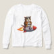 Charming and imaginative illustration of a cute cat dressed as an astronaut pilot, complete with goggles, helmet, and flight suit, riding a fiery rocket. This fun and adventurous design is perfect for space-themed projects, kids’ materials, and playful decor.