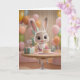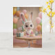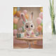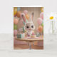 Cute Baby Bunny w/ Cake and Balloons 1st Birthday Karte