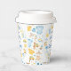 Cute boy baby shower paper cups with baby clothes and toys theme. Perfect baby shower tableware for a baby boy celebration.
