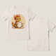 Set against a warm beige circular background with soft white floating dots, the entire scene evokes feelings of comfort, safety, and magical coziness. The color palette of golden yellows, warm coral-oranges, creamy whites, and soft earth tones creates a soothing, inviting atmosphere perfect for children's products and cozy-themed items.
