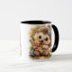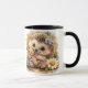 Start your day with a smile with this adorable baby hedgehog coffee mug. The sweet illustration features a tiny hedgehog cuddling a small teddy bear while sitting among soft flowers in a gentle watercolor woodland setting.