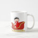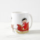 Mug with adorable baby in red outfit riding a sleigh pulled by two reindeer design.