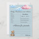 Welcome the new arrival with this incredibly cute and whimsical baby shower invitation! Featuring an adorable teddy bear floating on a cloud with pastel blue accents, this flat card invitation is perfect for a boy's baby shower or a gender-neutral celebration.