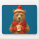 Cute Bear With Santa Hat Coffee Lover Funny Winter Mousepad