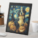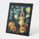 Cute Bernese mountain Dog Halloween Jack O Lantern Pumpkin Face Starry Night Van Gogh Style