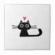 Cute Black Cat with Heart Kitten Valentine Classi Fliese