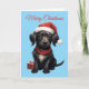Cute Black Dog at Christmas with a Santa hat and scarf