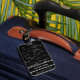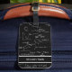 Unique luggage tag with a pattern of mathematic equations and graphics over a black background. Personalize the tag with your name. Illustrated and designed by Patricia Alvarez.