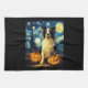 Cute Border Collie Dog Halloween Jack O Lantern Pumpkin Face Starry Night Van Gogh Style