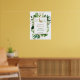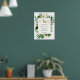 Surrounded by greenery, this elegant green and gold baby shower welcome poster sets an elegant, modern tone for a dinosaur baby shower.