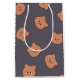 Cute Brown Teddy Bear Face Pattern Dark Blue Mittlere Geschenktüte