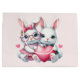Gift bag with an illustration featuring 2 white furry bunnies sharing a big pink heart. The girl bunny is wearing a cute bow on her head and heart-shaped glasses. The boy bunny is wearing an adorable little suit with a tie.