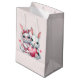 Gift bag with an illustration featuring 2 white furry bunnies sharing a big pink heart. The girl bunny is wearing a cute bow on her head and heart-shaped glasses. The boy bunny is wearing an adorable little suit with a tie.