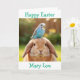 Cute Bunny and Blue Budge Personalized Easter Karte