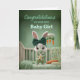 Celebrate a new baby girl with this adorable bunny design in a cozy green nursery. A soft, calming color palette and sweet details make it a unique and charming way to welcome a little one and send your well wishes to the happy new parents.