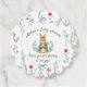 Decorate favors and thank you's to help celebrate the arrival of your little one with this classic storybook-inspired baby shower Favor Tag. Featuring a charming, watercolor style bunny holding a carrot, this design is framed by hand painted delicate blue ribbons, whimsical bows, and soft garden florals.