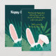 Say thank you in the sweetest way with this adorable bunny ears Easter thank you card. Featuring playful rabbit ears peeking out from lush green leaves on a deep teal background, this charming design adds a fun and festive touch to your Easter celebration.