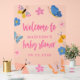 Celebrate your baby shower in style with this whimsical acrylic welcome sign featuring colorful butterflies and floral accents. Printed on a clear acrylic background, this modern and vibrant sign showcases a playful script and elegant typography, personalized with the mom-to-be’s name and shower date. The transparent design adds a unique and upscale touch to your baby shower décor. Perfect for spring or garden-themed baby showers celebrating a baby girl. Ideal for displaying at the entrance, on an easel, or near your gift or dessert table.
