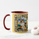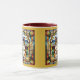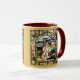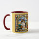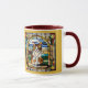 A cute cat coffee mug featuring acalico cat portrayed in stained glass.