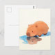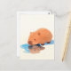 Cute Capybara Drinking from Blue Puddle Postkarte