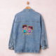 Cute Cartoon Boy and Girl Playing Soccer Together Jeansjacke