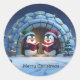 Cute Cartoon Caroling Penguins Runder Aufkleber