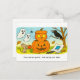 Cute Cartoon Cat Sitting in Pumpkin Costume Postkarte