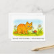 Cute Cartoon Cat Watching Ladybug in Meadow Postkarte