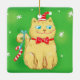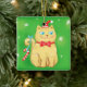 Cute Cartoon Christmas Cat with Santa Hat Keramikornament