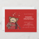 A birthday invitation with a cute drawing of a little kitten poking its head out of a gift box.