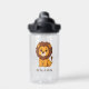 Cute cartoon illustration of a lion with fluffy mane sitting. Customizable text.