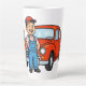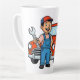 Cute Cartoon Mechanic with Red Car Illustration Milchtasse
