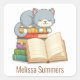 Cute Cat Book Stack Custom Name Bookplate Quadratischer Aufkleber