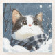 Cute cat cozy winter snow retro art