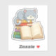 Cute Cat on top of a Book Stack Aufkleber
