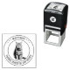 Customizable pet photo and text stamp. Please note, you may need to adjust the information by adding or deleting some characters to make the text properly aligned.