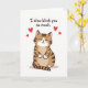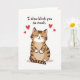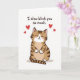 This greeting card shows a cute, chubby cartoon cat sitting in the lower middle of the image. The cat is colored in warm browns and tan with creamy white on its face and belly, and it has simple dark outlines. Its eyes are closed with a small smile and soft pink cheeks, giving the feeling of a calm, loving “slow blink.” A light shadow under the cat helps it feel settled on the page, while the background stays plain white. Above the cat, the message “I slow blink you so much” appears in a casual handwritten style, easy to read and centered near the top. Four red hearts float around the cat’s head, adding a sweet pop of color and a clear romance note ❤️💌. It’s a cozy little scene that works for love, friendship, or anyone you care about, and it pairs nicely with a small treat like 🍫.