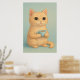 Cute Cat with Coffee Cup – Adorable Pastel Animal Poster