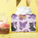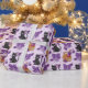 Cute black and orange cats and bows with a purple polka-dotted background