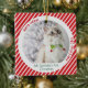 A cute, festive personalized holiday keepsake - the purr-fect cat lovers' Christmas gift. This unique pet photo ornament features a photo template, simple red and white candy cane pattern and whimsical fonts capturing the warmth and joy of the season.