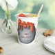 Adorable a baby is brewing Halloween gender neutral baby shower paper cups with an illustration of a witch cauldron with a bubbling orange potion. Illustrated and designed by Patricia Alvarez.