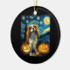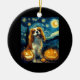 Cute Cavalier King Charles Spaniel Dog Halloween Jack O Lantern Pumpkin Face Starry Night Van Gogh Style