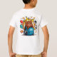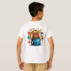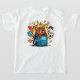This t-shirt features a bold full-back illustration of a playful cartoon bear bursting out with school supplies, snacks, and gaming vibes. The front keeps it clean and stylish with the phrase: