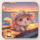Cute Chibi Kitten at the Harbor Sunset – Whimsical Getränkeuntersetzer
