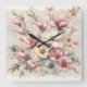 Cute chic girly floral and lace quadratische wanduhr