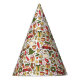 A fun and colorful Christmas doodle pattern featuring snowmen, stockings, candles, stars, red cars, holly, gifts, mittens, and festive treats. The playful illustrations add cheerful holiday spirit to any winter party or Christmas event.