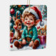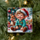 Joyful baby elf giggles with his tiny reindeer under twinkling lights. Vibrant ornament captures instant Christmas magic.